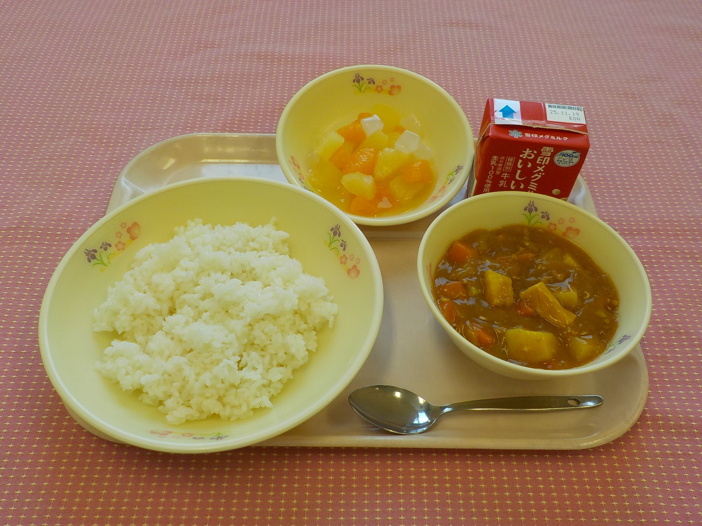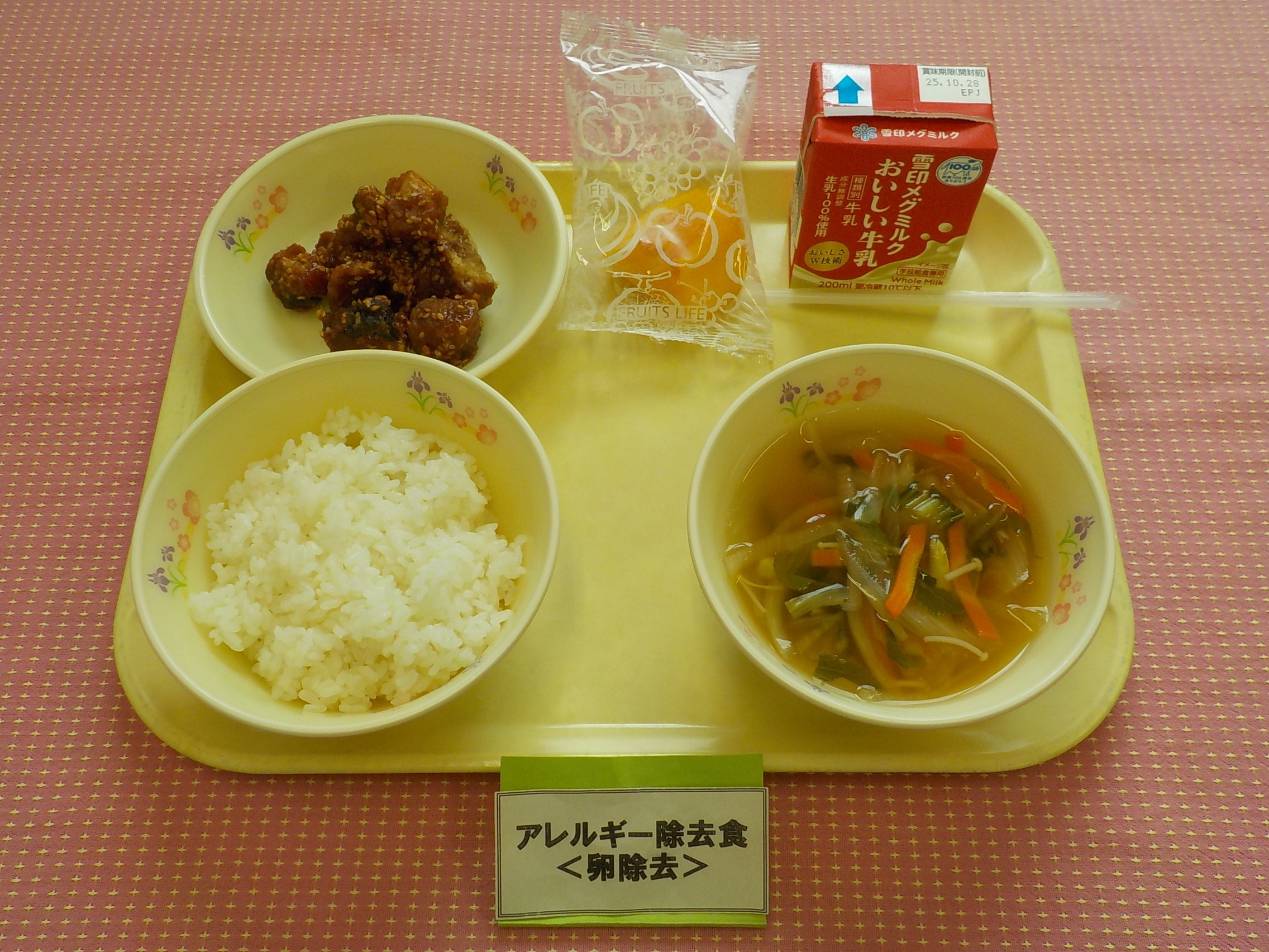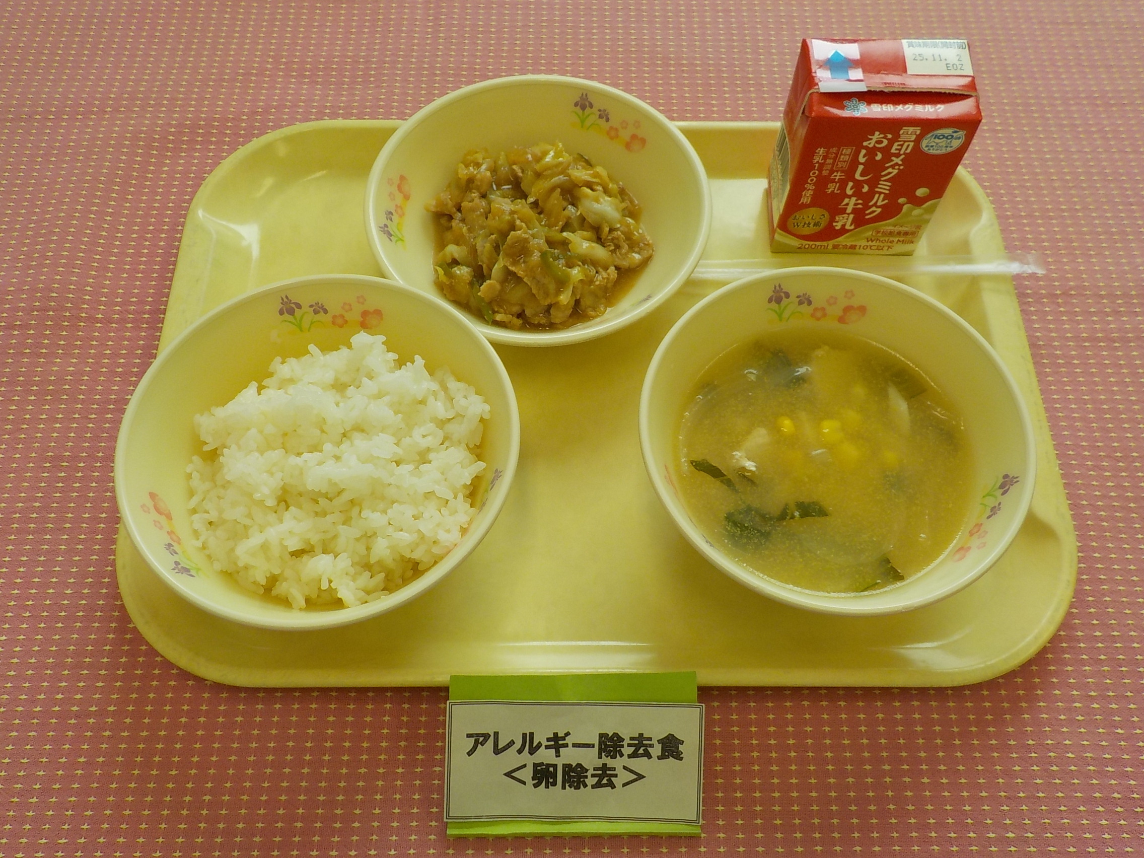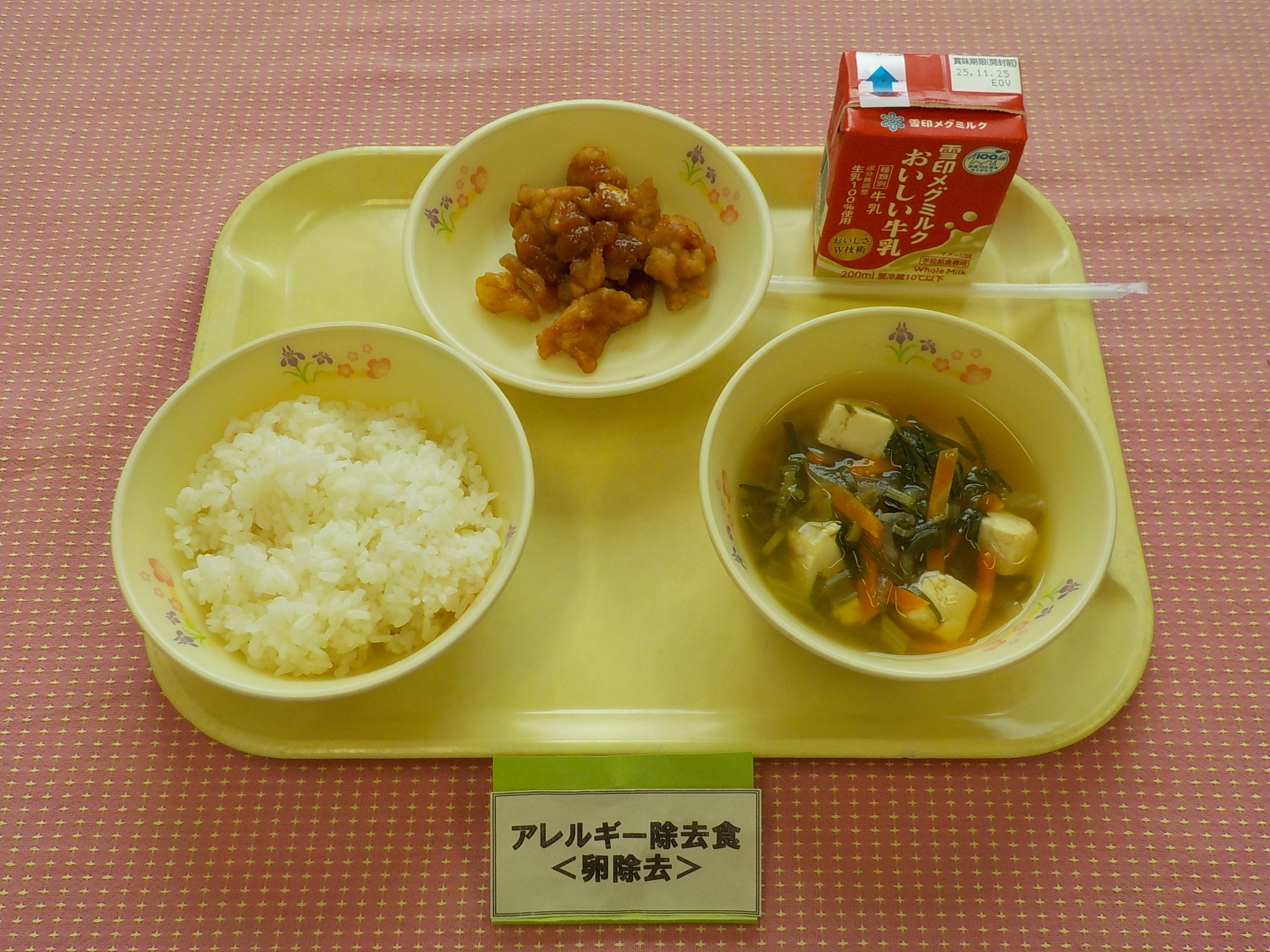 本日のメニューは、ごはん、牛乳、かきたま汁、