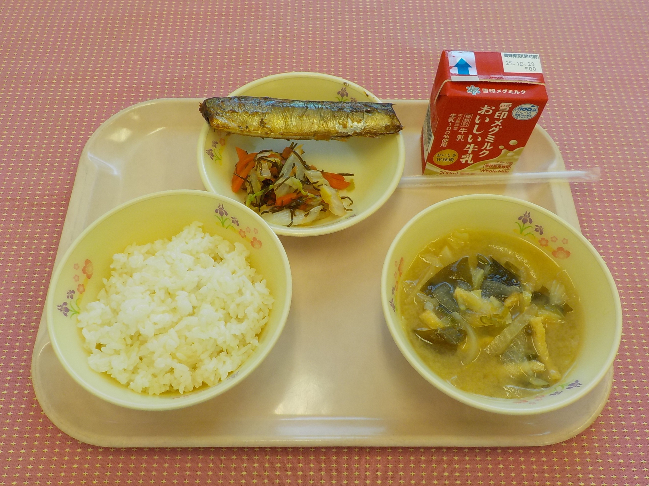 本日のメニューは、ごはん、牛乳、玉ねぎのみそ汁、