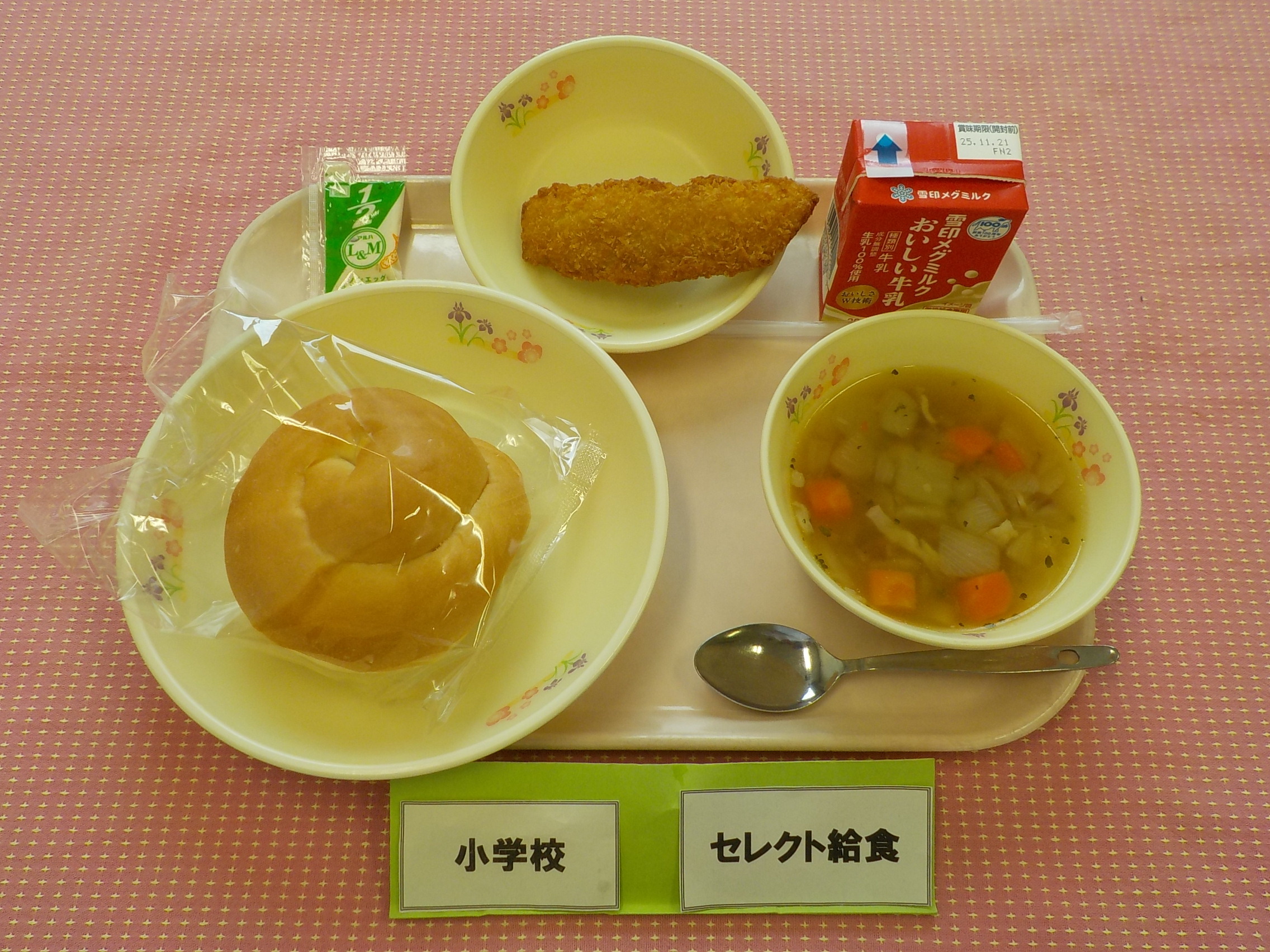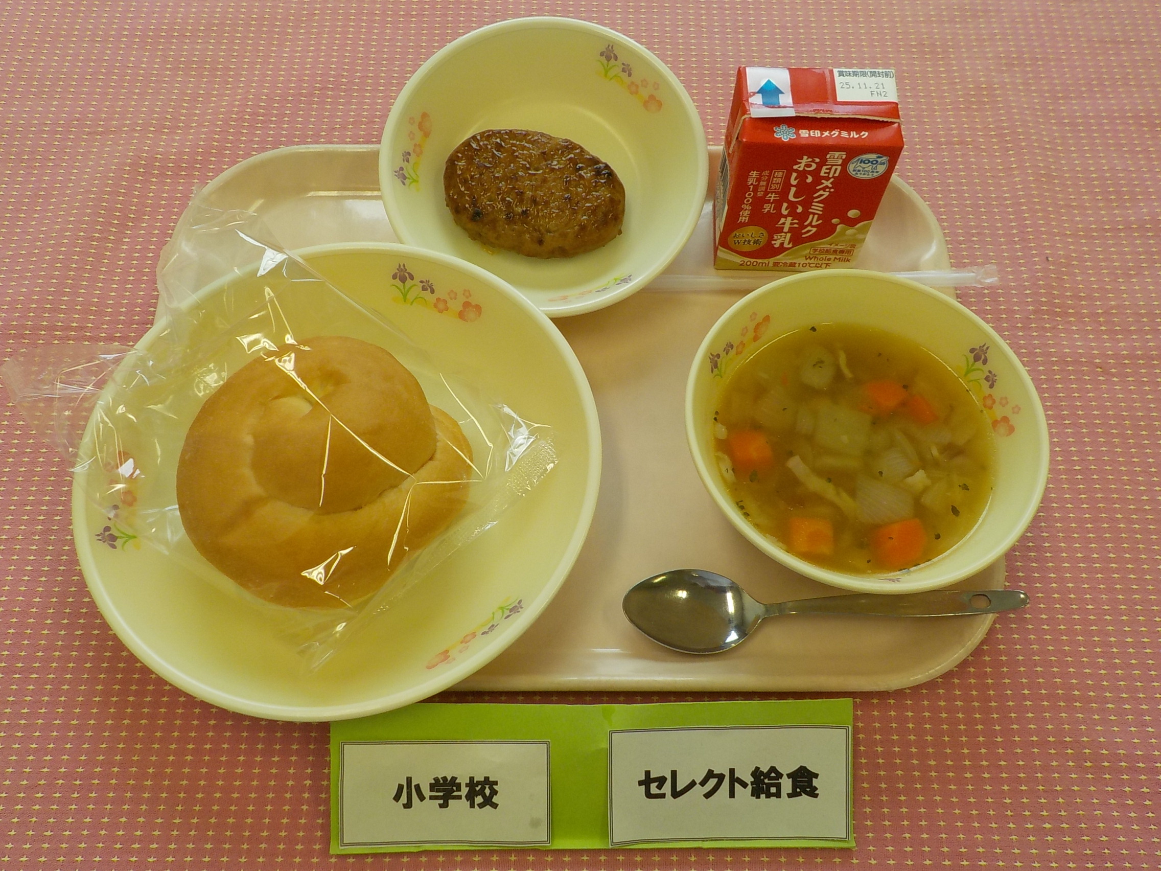 小学校は、バーガーパン、牛乳、さつまいもスープ、