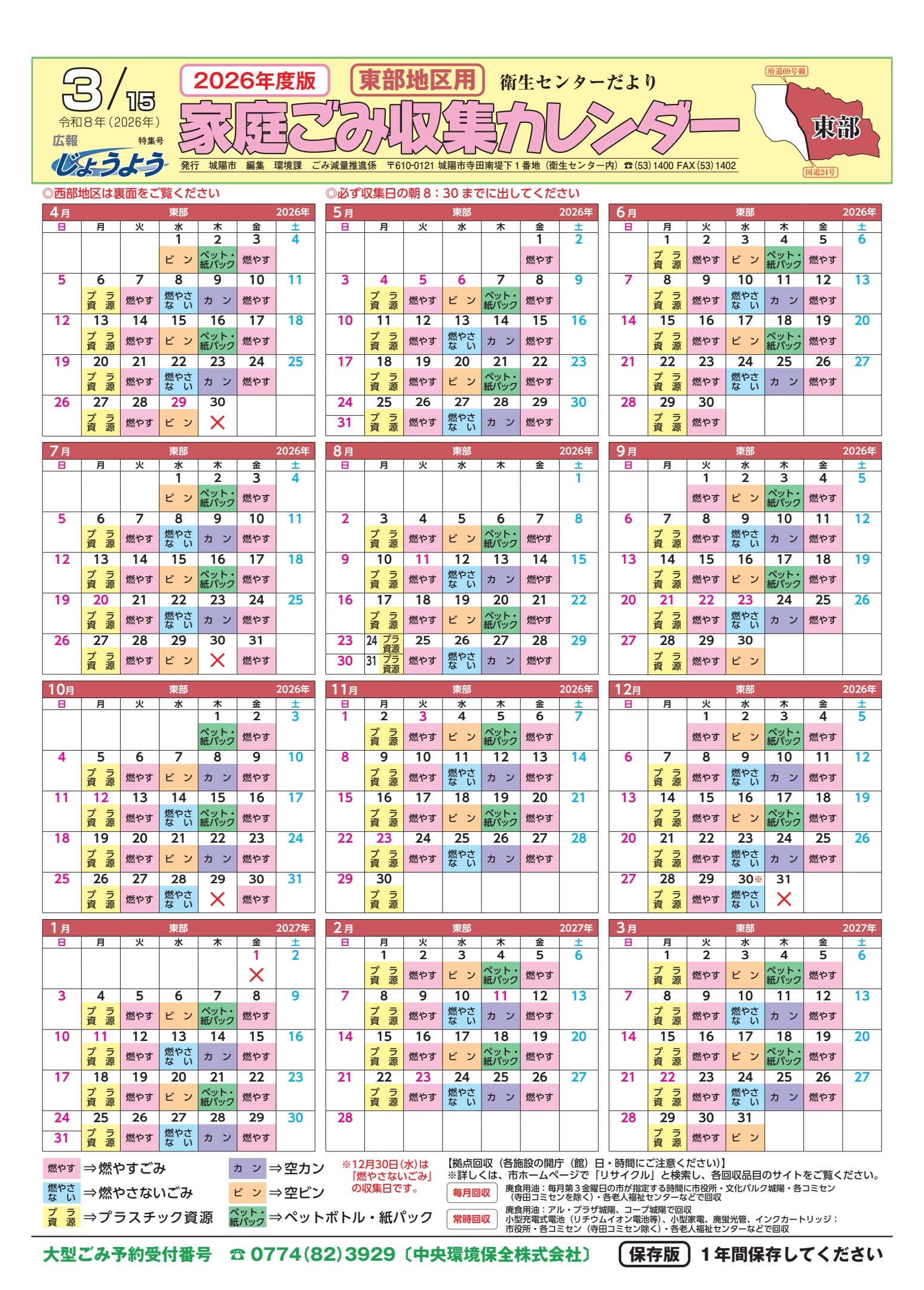 東部地区用 (2026年度版ごみカレンダー)