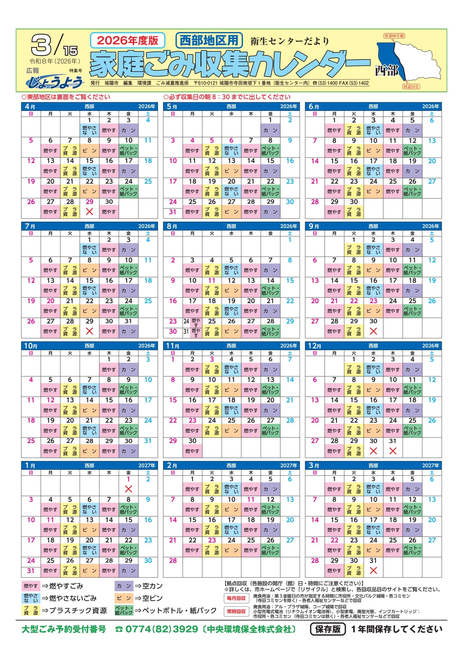 西部地区用 (2026年度版ごみカレンダー)