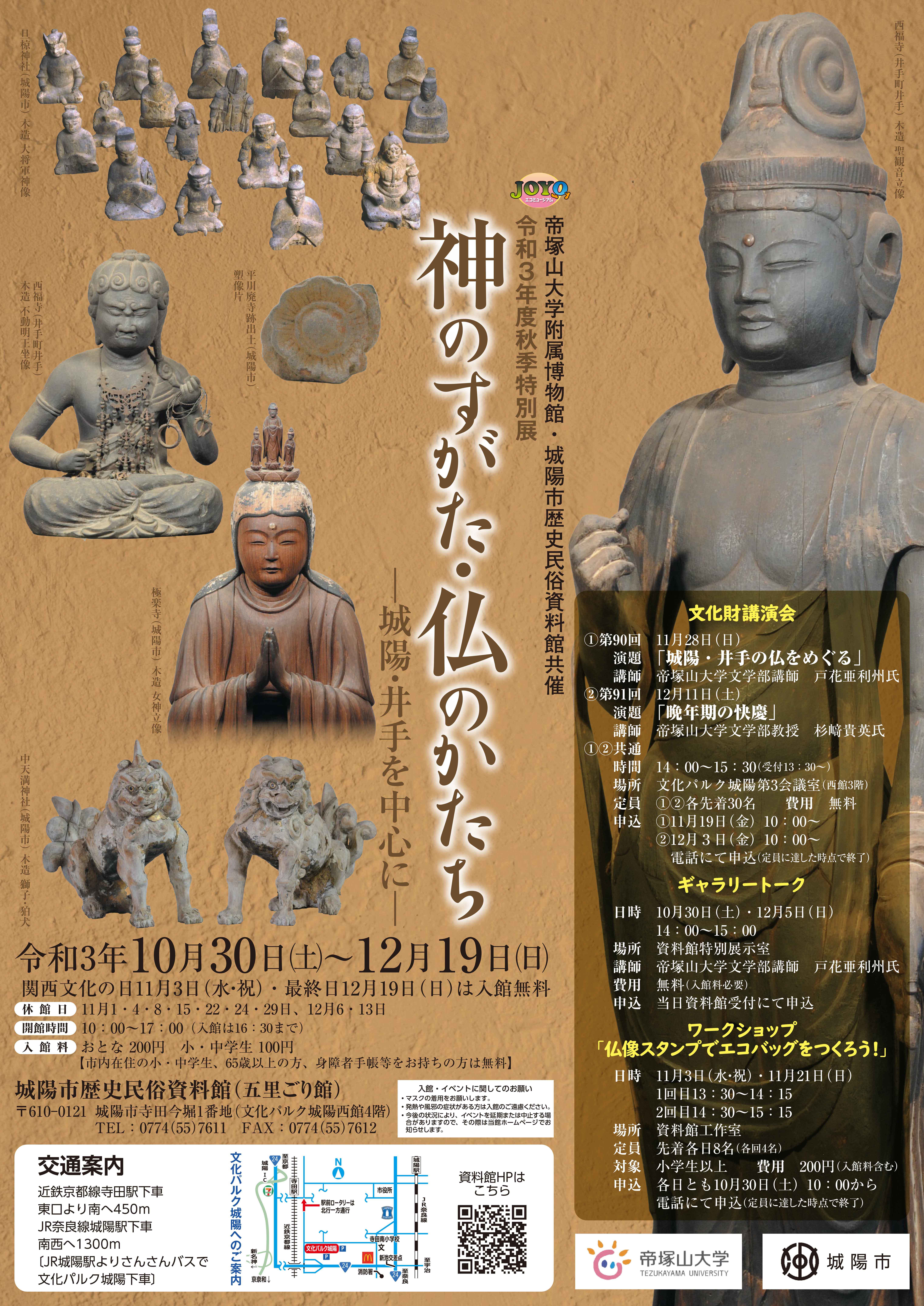 帝塚山大学附属博物館・城陽市歴史民俗資料館共催 JOYOエコミュージアム・令和3年度秋季特別展「神のすがた・仏のかたち-城陽・井手を中心に-」