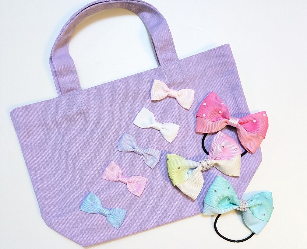 手作り体験(ヘアゴム、リボンバッグ)と、ヘアアクセサリー、リボン雑貨の販売