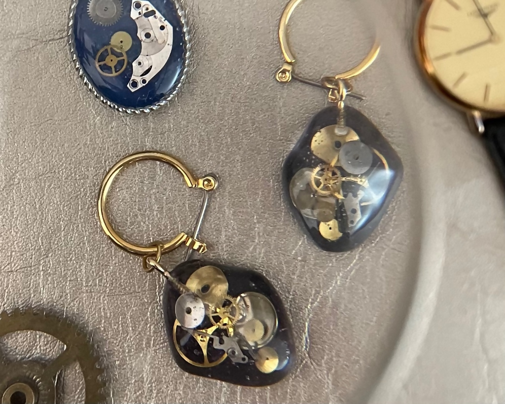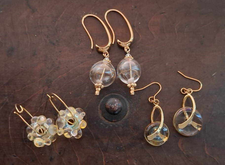 棒ガラスや板ガラスを加工したものを材料に制作したアクセサリー