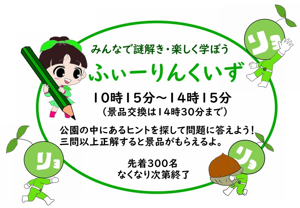 森の事、木の事、竹の事クイズで学び楽しく体験(木こり、どんぐり工作)などなど