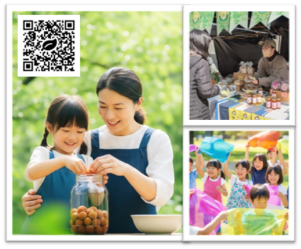 基金紹介と遊び、寄付付き商品販売、手作り梅シロップ体験