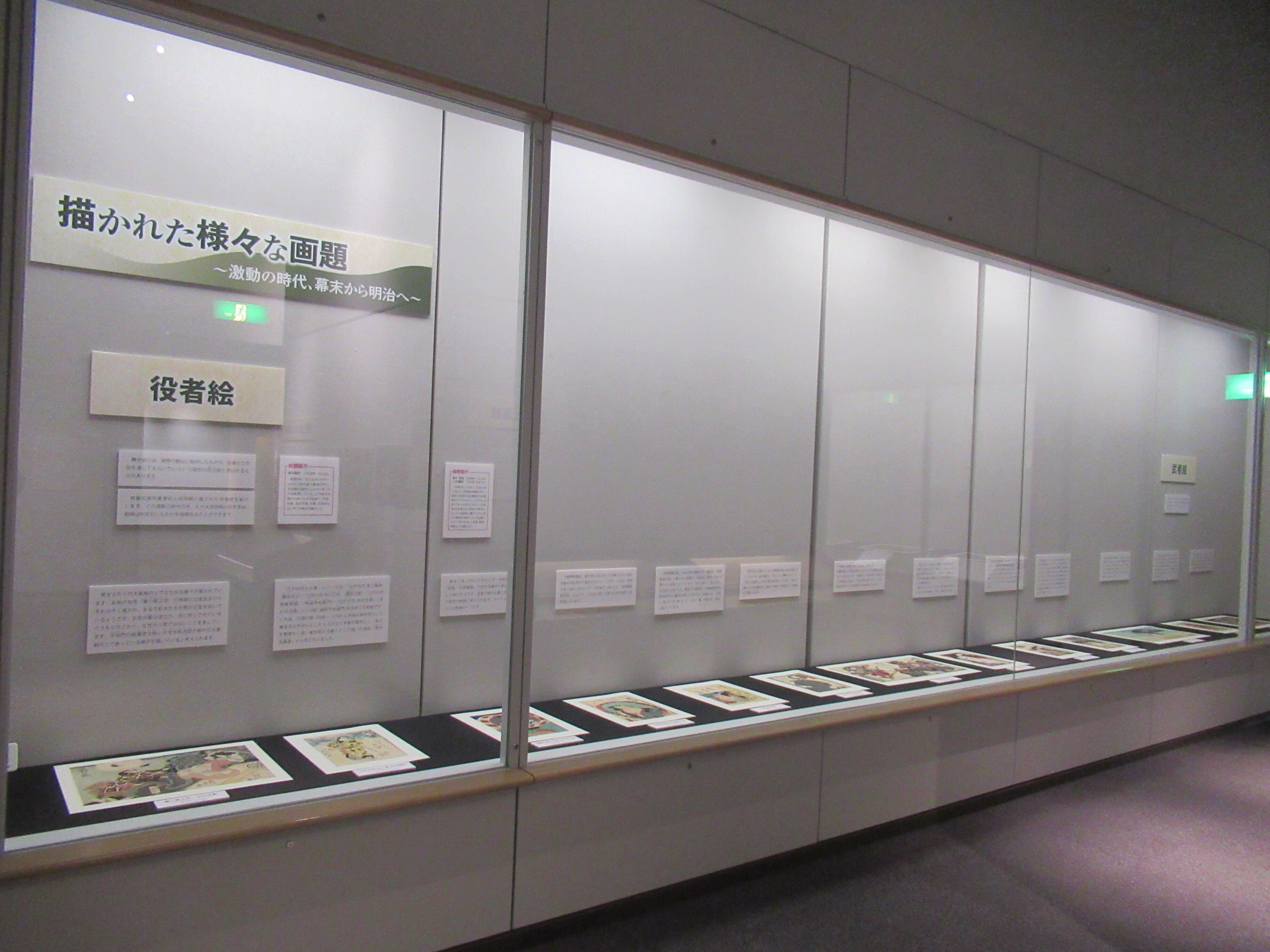 幕末から明治にかけて制作された役者絵、武者絵、物語絵、上洛絵、戦争絵、新聞錦絵、開化絵、おもちゃ絵などを展示します。