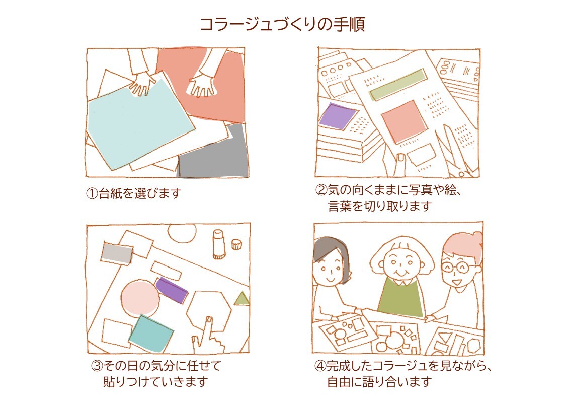 Tsumugiサロンは、月1回地域の女性たちと気の向くままにコラージュをつくり、温かい飲み物を楽しみながら語りあう場です。
