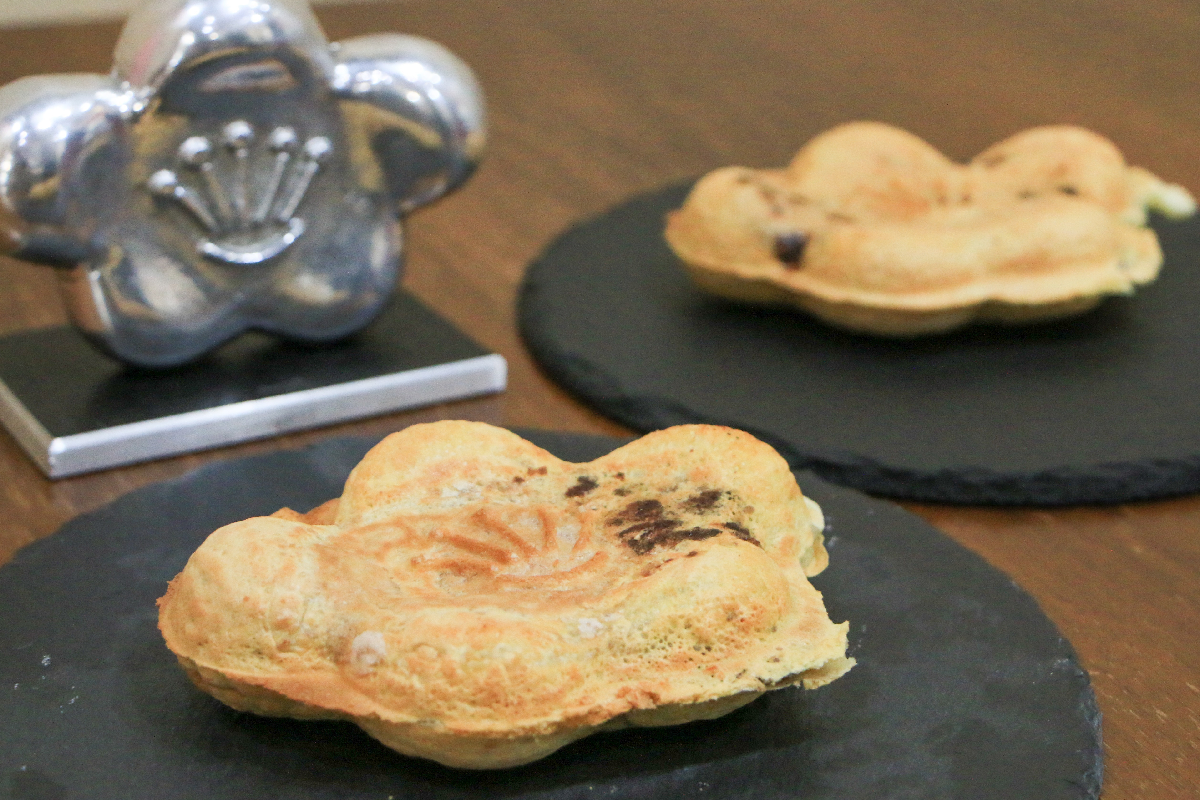 「青谷梅乃香焼」は梅の花を模した形状、小麦粉の生地に餡を入れたたいやき、大判焼のような菓子で、一般的なたいやき、大判焼に比べて薄い皮と低糖度の餡が特徴です。