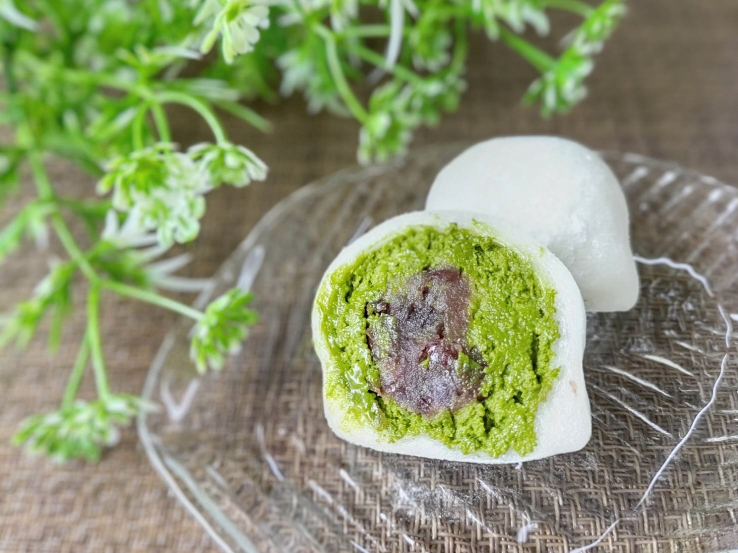 「抹茶む~す大福」は、もちもち食感と濃厚でなめらかな抹茶ムースのハーモニーを楽しめる和洋折衷のスイーツです。見た目も上品で、日本茶はもちろん洋風ドリンクにも合う逸品です 。