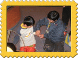 まず、子どもたちには、出題する道具を実際に手で持ってもらい、その道具の重さや形に直接触れてどのようにして使っていたのかを推理してもらいます。また、電気炊飯器を登場させて「炊飯」「保温」機能について話し合い、昔の台所道具(ハガマ・オヒツ・フゴ)をクイズにして紹介しています。そして、スタッフによるミニ劇を上演しながら「火鉢」「コタツ」「ユタンポ」の使い方を紹介しています。