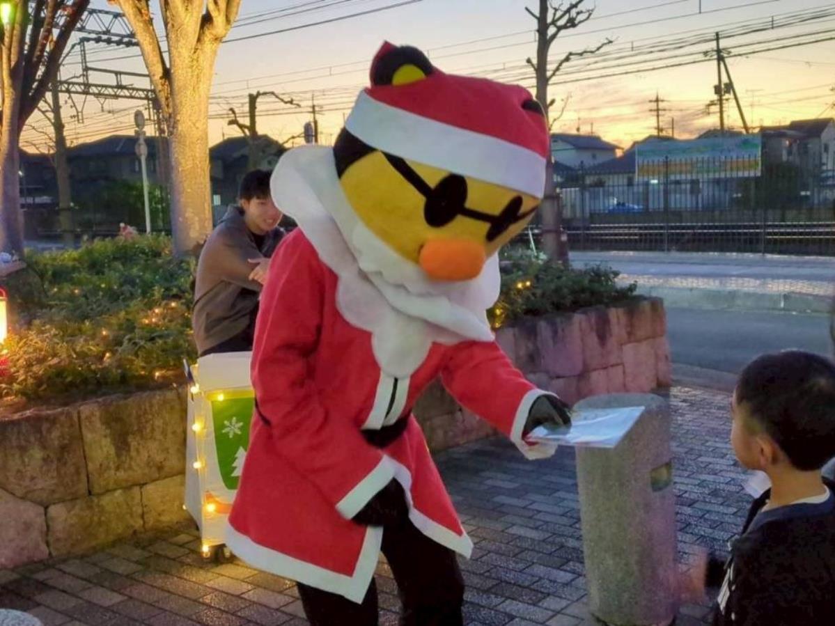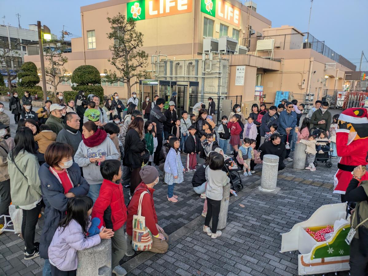 西側駅前広場で行った点灯式では、サンタの「てらちゃん」も登場し、子ども達にプレゼントを渡して喜んでもらいました!