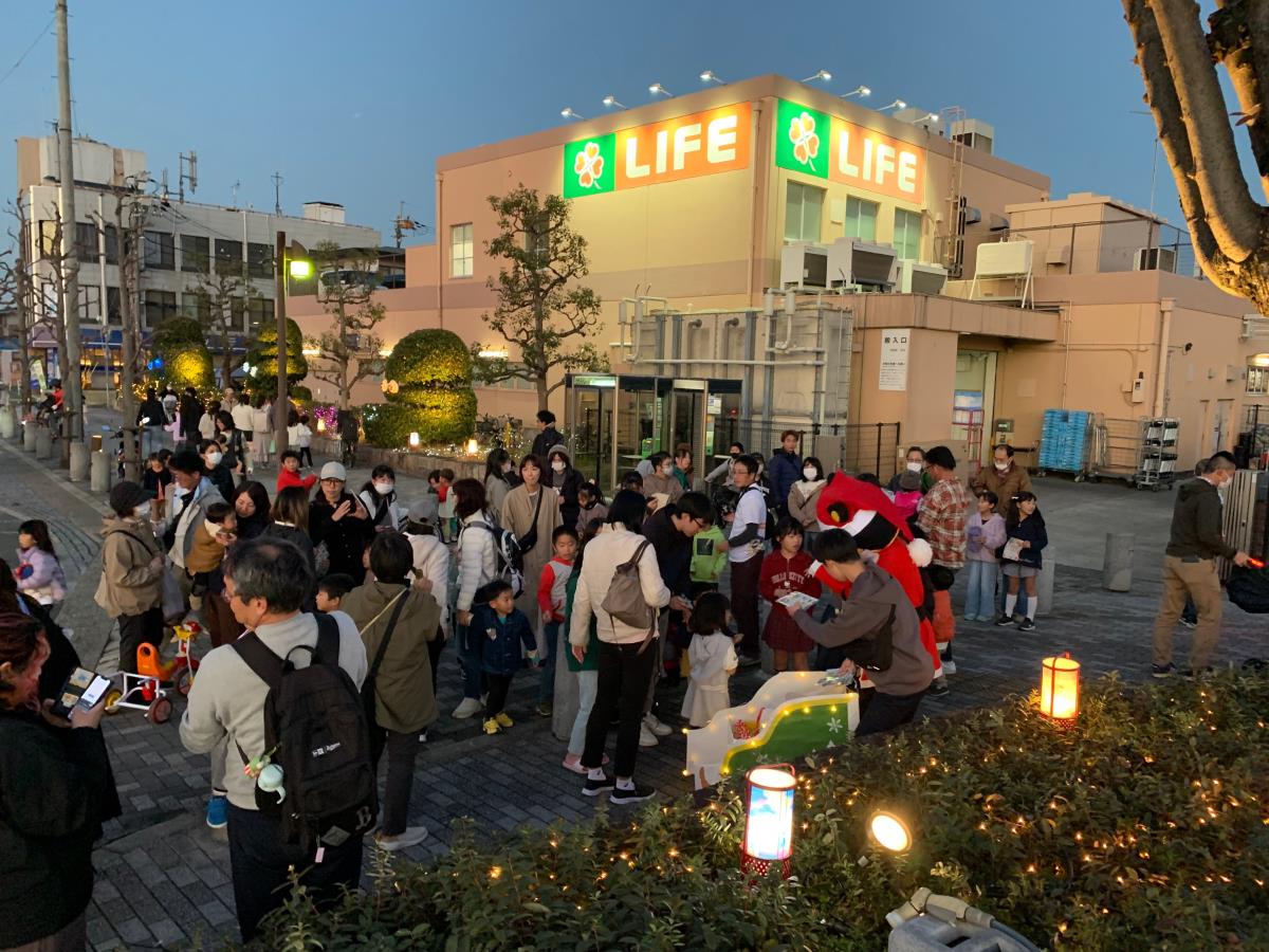 今年も、駅周辺に灯ろうを設置し、道行く人がホッコリしてもらえるように工夫しています!ご家族での夜のお散歩コースに楽しんでいただけると思います。